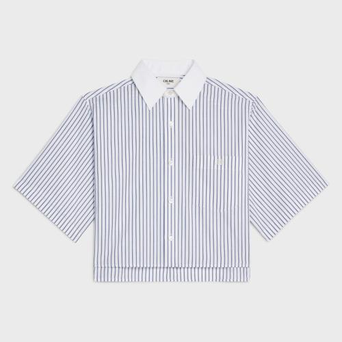 CELINE赛琳思琳 22年秋冬 女士 短袖衬衫 条纹棉质短款衬衫 2C751251R.01WN
