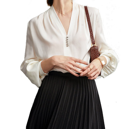 GeleiStory/GeleiStory 夏季新款桑蚕丝衬衫法式优雅修身真丝上衣女士长袖衬衫