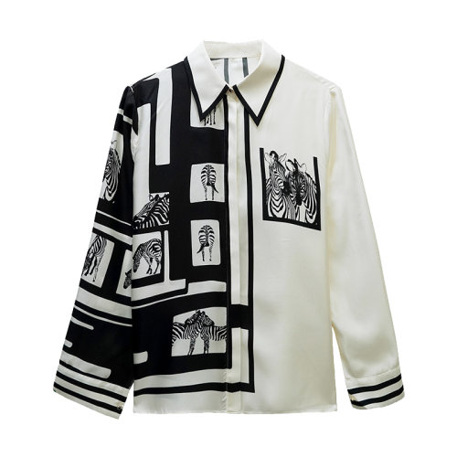 GeleiStory/GeleiStory 真丝桑蚕丝宽松洋气时尚斑马衬衣女士长袖衬衫