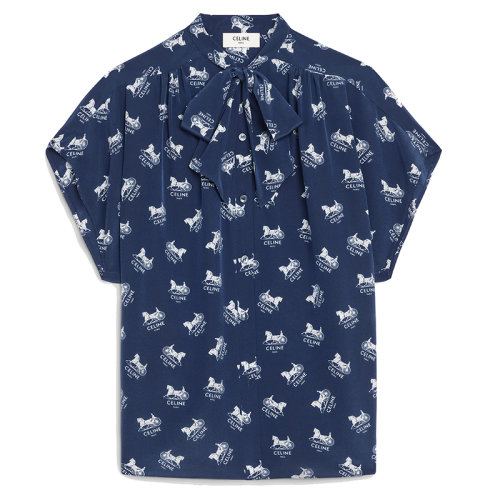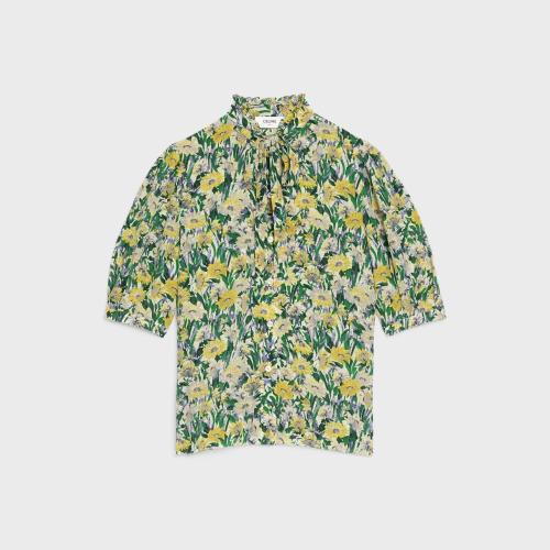 CELINE赛琳思琳 22年秋冬 女士 短袖衬衫 “雏菊”绉绸大花结衬衫 2B597187R.01KS