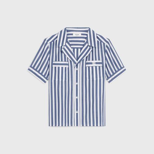 CELINE赛琳思琳 22年秋冬 女士 短袖衬衫 条纹莱赛尔纤维开领衬衫 2B610291Q.01XB