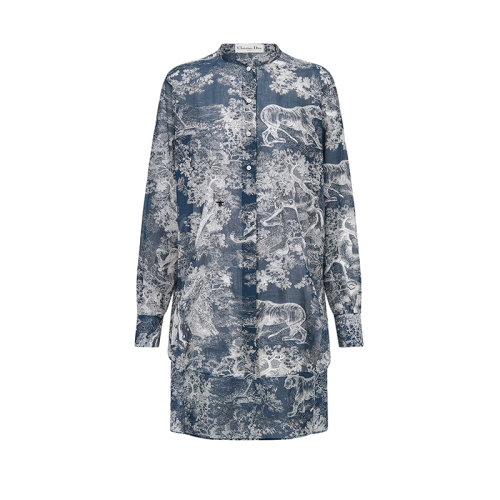 DIOR/迪奥 22年早春新款 女士海军蓝色纯棉薄纱Reverse茹伊印花长款衬衫221B54A3846_X5813