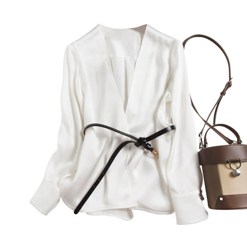 GeleiStory/GeleiStory 新款一见倾心重磅真丝白色桑蚕丝缎面真丝宽松外套衬衫 女士长袖衬衫