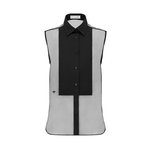DIOR/迪奥 22年春夏新款 女士黑色桑蚕丝欧根纱效果面料搭配胸饰无袖衬衫221B67A6133_X9000