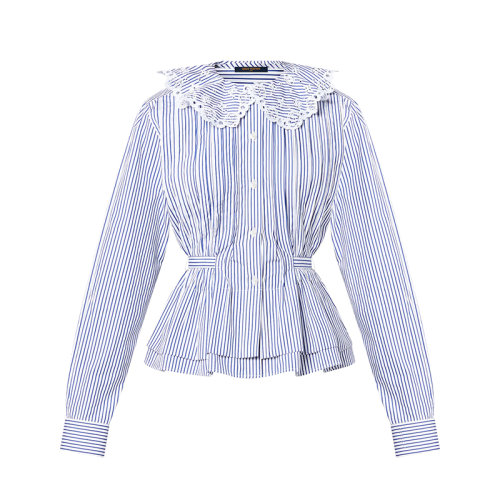Louis Vuitton/路易威登 22年春夏新款 女士浅蓝色纯棉巴亚德条纹彼得潘领衬衫1A9O20