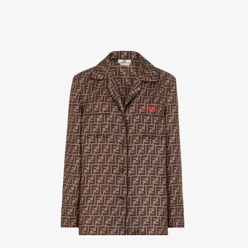 FENDI芬迪 22年春夏 女士 长袖衬衫 棕色FF经典图案桑蚕丝衬衫 FS6993A8G3F118W