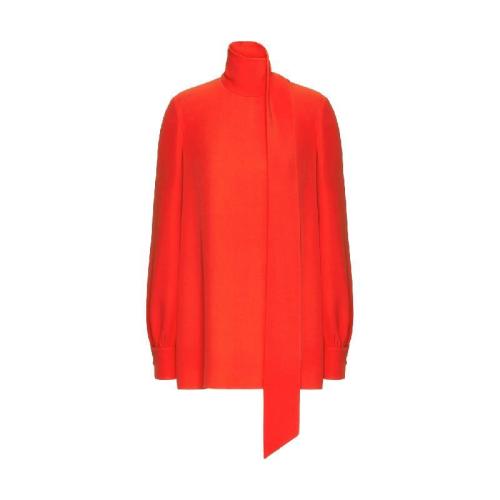 VALENTINO华伦天奴 22年秋冬 女士 长袖衬衫 TOP EN ORGANZA ET DENTELLE WB0AE6K01C80NO 预定商品1-3周发货