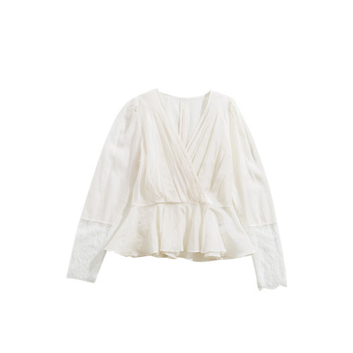 GeleiStory/GeleiStory 春夏新款V领薄款长袖褶皱衬衫 女装>女士衬衫>女士长袖衬衫