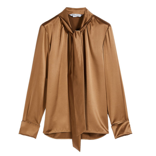 MaxMara/麦丝玛拉 22年秋冬新款 TENEBRE系列 女士棕色真丝围巾衬衫1116082906014