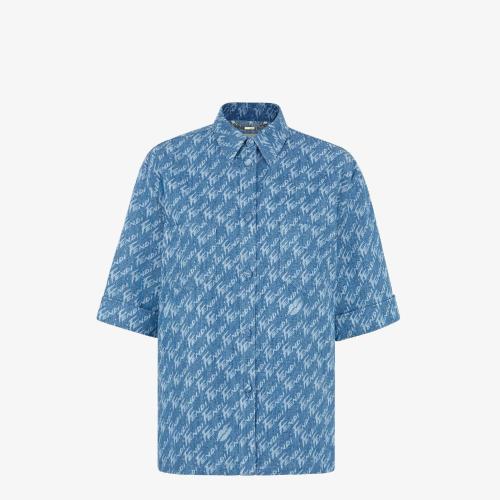 FENDI芬迪 22年秋冬 女士 短袖衬衫 浅蓝色青年布衬衫 FLF641AJK2F1H3F