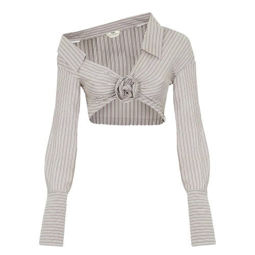 Balenciaga/巴黎世家 22年秋冬新款 女士黑白条纹纯棉饰有白色刺绣LOGO图案长袖衬衫671663TNM291070