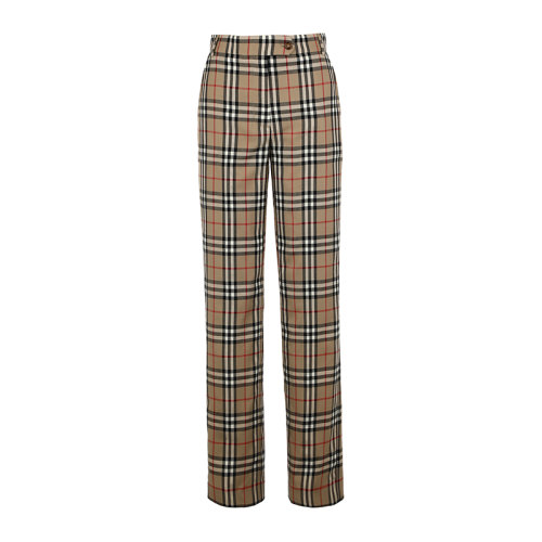 BURBERRY/博柏利精纺Vintage 复古格纹羊毛直筒量裁长裤女士西裤8033467