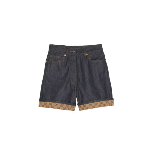 GUCCI/古驰 22秋冬新款 女士蓝色纯棉混纺GG帆布滚边牛仔短裤701707XDB2A4759