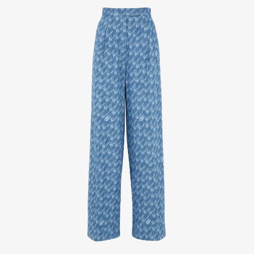FENDI芬迪 22年秋冬 女士 休闲裤 浅蓝色青年布长裤 FLP762AJK2F1H3F