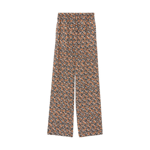 BURBERRY/博柏利 22年春夏新款 女士白色/米色桑蚕丝老花印花阔腿裤长裤80572031