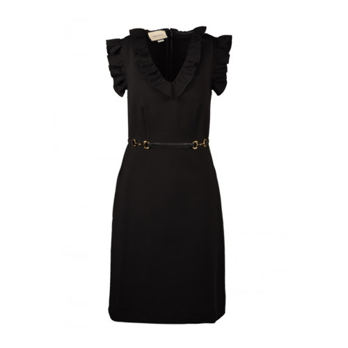 GUCCI 古驰 女装 服饰 黑色V领收腰修身中长款 女士连衣裙裙装 604896