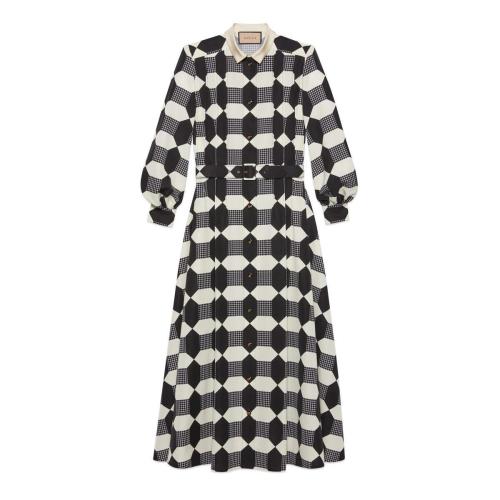 GUCCI古驰 22年秋冬 女士 光影印花真丝腰带连衣裙 664317 Z8AWG 9791