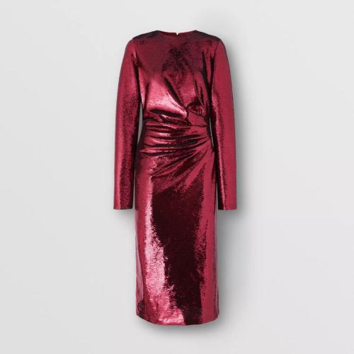 BURBERRY 22年秋冬 女士 亮片弹力尼龙缩褶连衣裙 80547271