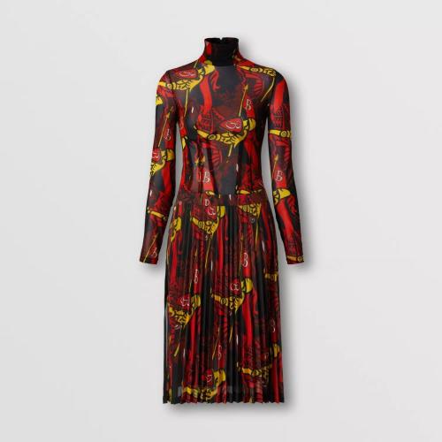 BURBERRY 22年秋冬 女士 马术骑士印花平织高领连衣裙 80621181