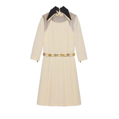 GUCCI古驰 22年秋冬 女士 饰水晶羊毛绉绸连衣裙 669804 ZAHZZ 9167