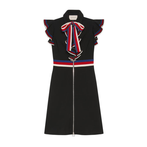 GUCCI/古驰 女士黑色织带弹力针织修身连衣裙(99新未使用)
