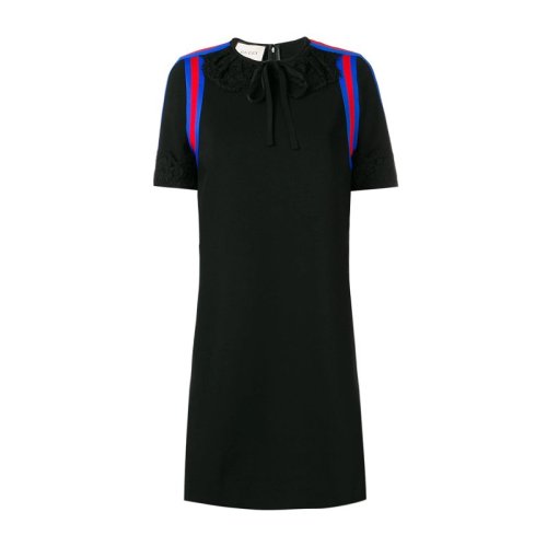 GUCCI 古驰 女装 服饰 黑色粘胶纤维圆领短袖半袖T恤女士连衣裙