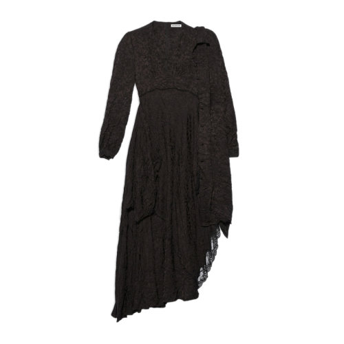 Balenciaga/巴黎世家 女士黑色粘胶纤维花卉提花装饰不对称底线背面拉链连衣裙女裙 658868-TKO15-1000