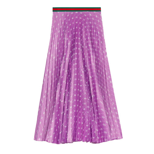GUCCI/古驰 22年秋冬新款 adidas联名系列 女士紫色尼龙丝缎面料斜纹老花印花百褶裙半身裙?696770ZAJC09692