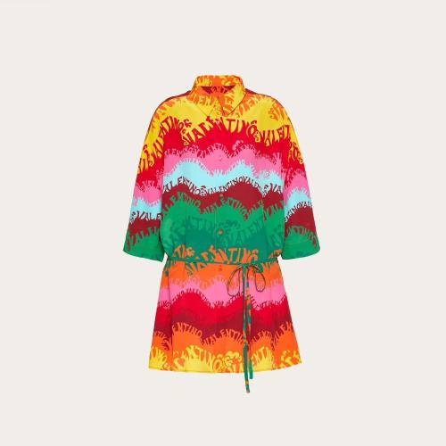 VALENTINO华伦天奴 22年秋冬 女士 连衣裙 ROBE CHEMISE EN CREPE DE CHINE a IMPRIMé VALENT