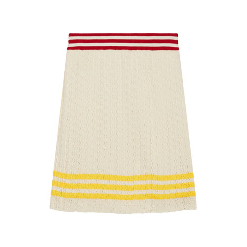 GUCCI/古驰 22年秋冬新款 adidas联名系列 女士象牙白色纯棉针刺菱形图案半身裙短裙702874XKCF89296