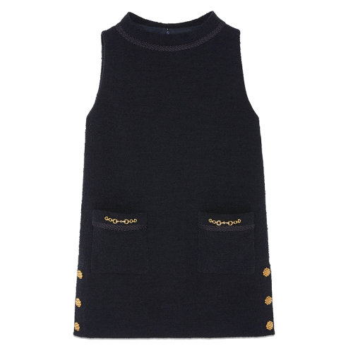 GUCCI/古驰 黑色羊毛 轻盈柔软的花呢和绉纱 女士连衣裙?652725ZAF5U4035