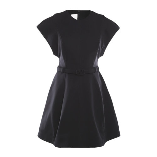 Valentino/华伦天奴 女士黑色聚酰胺V字徽标腰带背面拉链开合圆领短袖A字连衣裙女裙 WB3VAW45-6FH-0NO