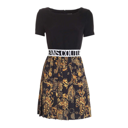 VERSACE JEANS/范思哲牛仔 女士黑色涤纶混纺弹性纤维经典字母徽标巴洛克印花装饰圆领长袖连衣裙 71HAO919-NS006-G89