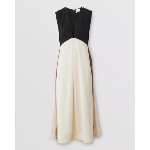 BURBERRY 22年秋冬 女士 拼色粘胶纤维无袖连衣裙 80546141