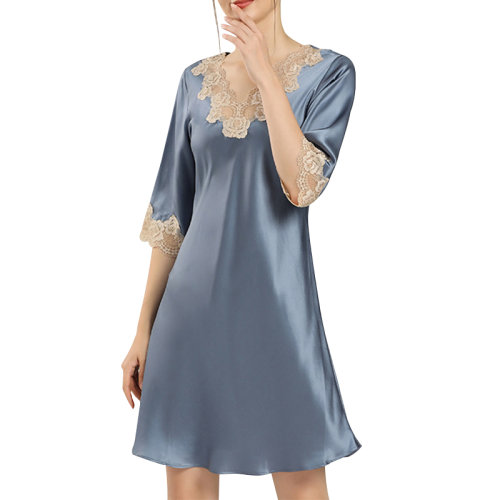 GeleiStory/GeleiStory 夏季新款休闲居家中袖蕾丝性感桑蚕丝真丝睡裙 女睡衣/家居服