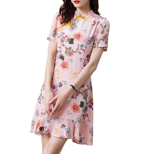 GeleiStory/GeleiStory 2022夏新款立领盘扣印花气质中国风旗袍 女装>中式女装>女旗袍
