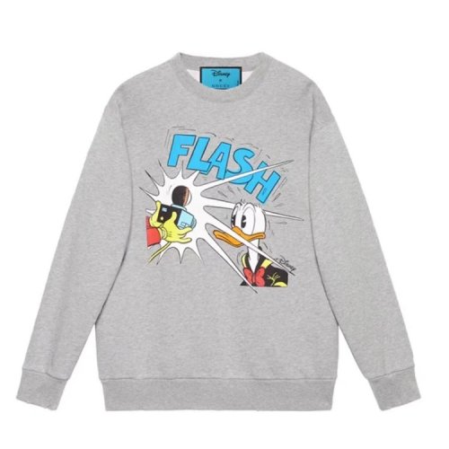 GUCCI/古驰 新款迪士尼唐老鸭图案灰色圆领套头复古做旧卫衣623245 XJDAJ 1230男女同款