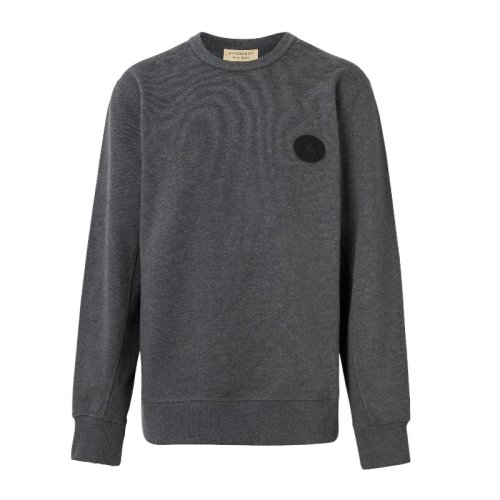 BURBERRY/博柏利 20春夏 男装 服饰 中调麻灰棉质刺绣徽章装饰长袖圆领运动衫T恤 男卫衣