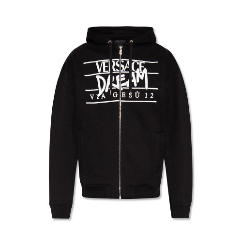 VERSACE/范思哲 男士黑色棉质字母徽标印花外套夹克运动衫 1005203-1A03493-1B000