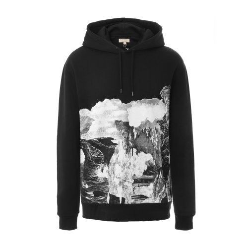 BURBERRY/博柏利 黑色连帽加绒男士卫衣 巴宝莉 男卫衣 内搭 休闲上装 抽绳款 瑕疵特卖(陈列痕迹,不影响使用)
