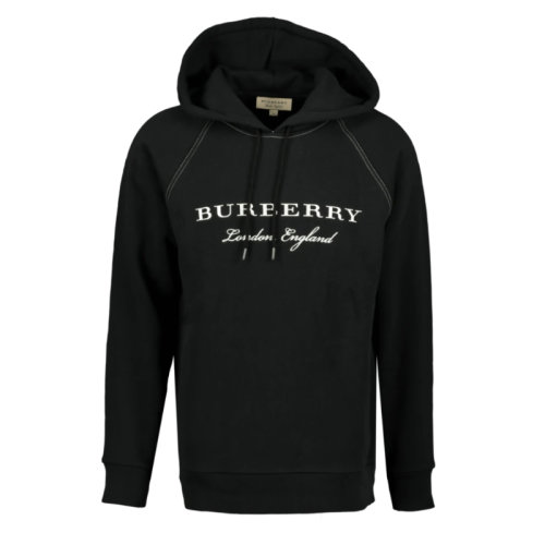 BURBERRY/博柏利 男士黑色连帽卫衣 白色大字母LOGO 80265231【奥莱】