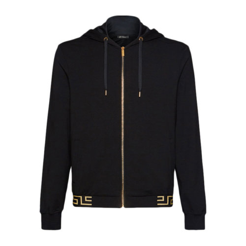 VERSACE/范思哲 男士黑色莫代尔混纺氨纶经典希腊回纹装饰长袖连帽卫衣上衣夹克外套 AGU15010-AV00194-A80G