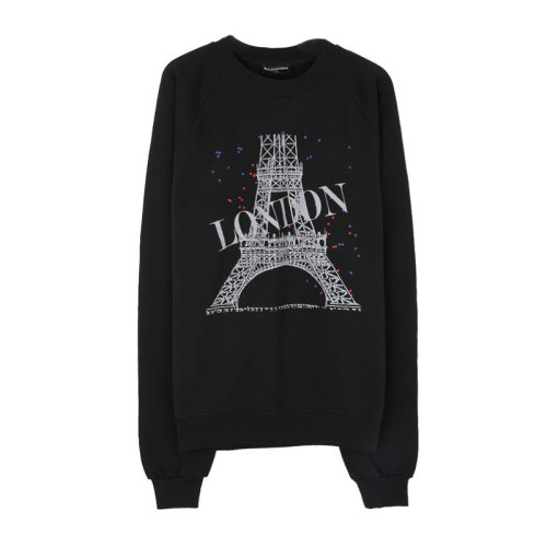Balenciaga/巴黎世家 男士黑色棉质埃菲尔铁塔印花字母LOGO长袖圆领T恤 508122-TYK72-1000