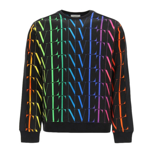 Valentino/华伦天奴 男士黑色多色棉质混纺聚酰胺经典字母徽标印花装饰圆领长袖上衣卫衣运动衫套头衫 VV3MF15M-6LF-20K