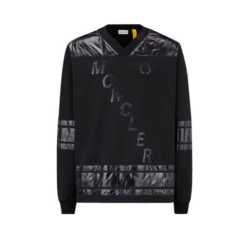 Moncler/蒙克莱 22年秋冬新款 Maya 70系列FRGMT藤原浩合作款 男女同款星钻黑色醋酸珠地面料标识印花曲棍球衫H209U8G00004M2355999