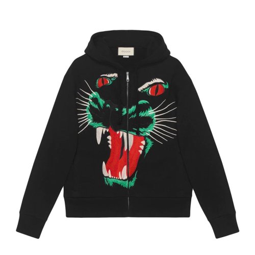 GUCCI 古驰 男装 服饰 黑色棉质豹头图案长袖简约百搭连帽男士卫衣