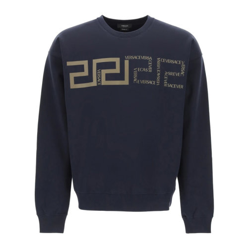 VERSACE/范思哲 男士海军蓝色棉质希腊回纹装饰圆领长袖上衣卫衣套头衫运动衫 1001305-1A00942-1U610