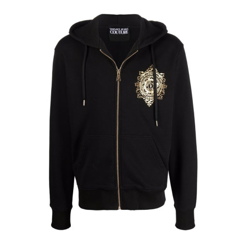 VERSACE JEANS/范思哲牛仔 男士黑色棉质经典字母徽标装饰拉链开合长袖上衣外套连帽衫运动衫 71GAIF06-CF00F-G89