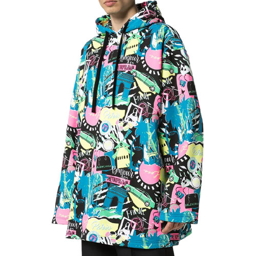 Balenciaga/巴黎世家 纯棉 印花 连帽 加绒 卫衣 男装 男卫衣 抽绳款 宽松版 594576THV651045 瑕疵特卖(陈列痕迹,不影响使用)