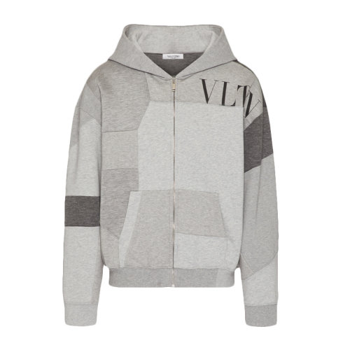 Valentino/华伦天奴 男士灰色拼色棉质混纺锦纶经典字母徽标印花装饰兜帽式长袖上衣卫衣外套 WV3MF19E-7CW-080